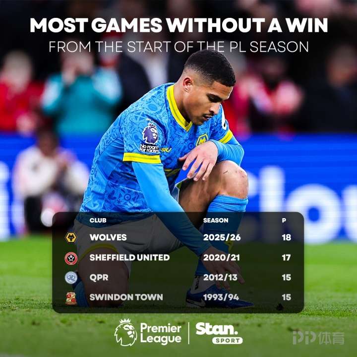 据统计,狼队开季18轮不胜,创造了英超历史的最差开局,超越谢菲联在2020/21赛季的17轮不胜。