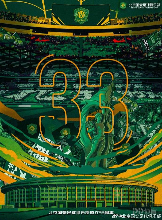 今天是北京国安足球俱乐部成立的33周年,北京国安官方发文庆祝俱乐部生日,并且感谢球迷一路相伴: