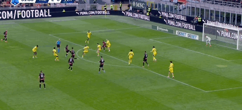意甲第17轮,AC米兰vs维罗纳。比赛第53分钟,莫德里奇禁区前沿打门被门将扑了一下后击中立柱,恩昆库跟进补射破门梅开二度,米兰3-0领先维罗纳!