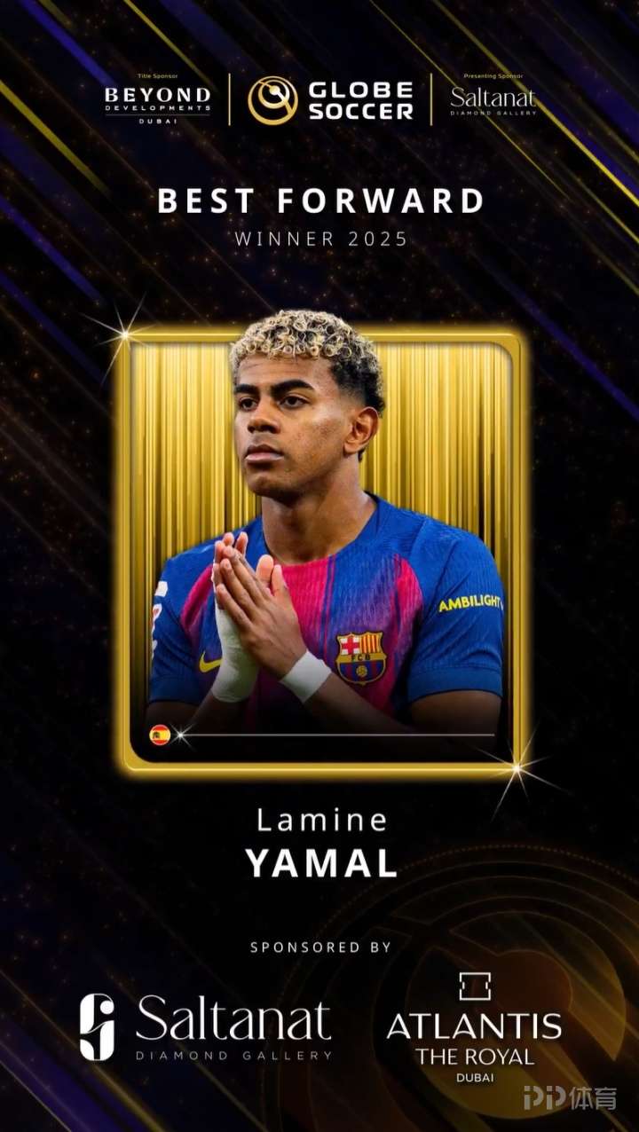 环足奖颁奖典礼,亚马尔当选为2025环足奖最佳前锋奖。24/25赛季,亚马尔联赛贡献8球15助攻,帮助巴萨夺得西甲冠军。在新赛季,亚马尔也已在各项赛事中直接参与20粒进球,这使他成为巴萨最高产的球员。他在西班牙国家队同样高效,目前已为西班牙出场23次,打入6球。
