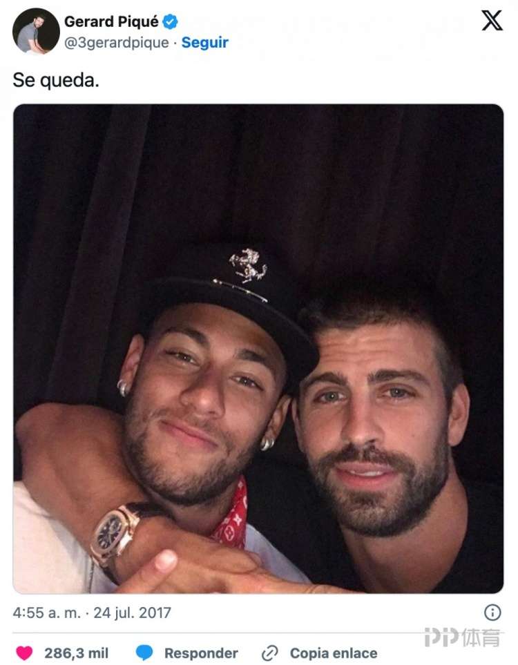 这句话印证了许多人随着时间推移的猜测:在皮克发布那张照片时,更衣室里早已默认内马尔不会继续留在巴萨。那不过是一次球员之间的玩笑,而他们都清楚,球队将在那个夏天失去一位核心球星。