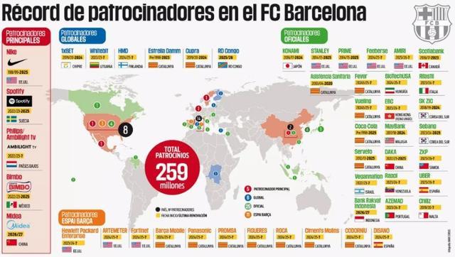 亚洲赞助商数量同样增长明显。巴萨目前与来自日本的科乐美、中国的DAKA以及将于2026年7月1日起生效的美的、韩国的SK ZIC和世邦、马来西亚银行以及中国香港的EBC保持合作关系。
