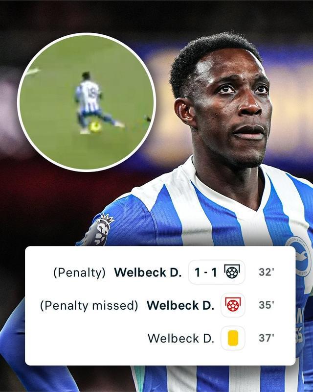 英超第19轮,西汉姆2-2布莱顿,维尔贝克经历了一场特别的比赛,他在短时间内点球二中一,还吃到一张黄牌。